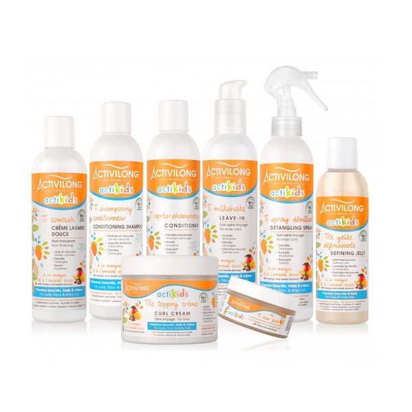 Délicats et fragiles, les cheveux des tout-petits ont besoin d'être nourris et hydratés pour préserver leur santé, leur douceur et leur éclat. La gamme complète Actikids réussit le tour de force de combler les cheveux des enfants de nutriments, notamment à travers du beurre de mangue et de l'huile d'amande douce bio contenus dans sa formule, sans pour autant oublier de sublimer leurs jolies boucles.