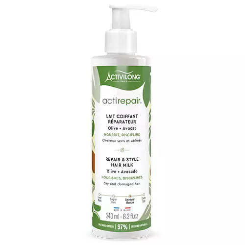 \nLe Lait Coiffant Réparateur Actirepair Activilong hydrate, répare et discipline les cheveux secs et abîmés.
