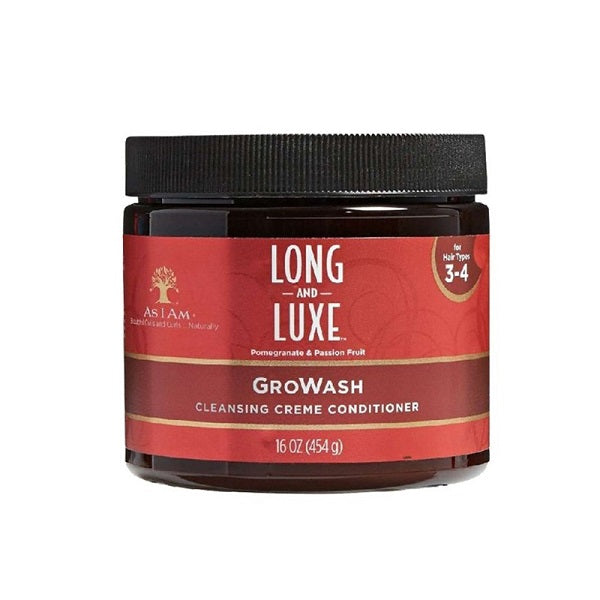 \nLe Growash Long & Luxe est un produit fabriqué par AS I AM avec le plus grands soin pour laver vos cheveux. Avec l'extrait de grenade qui s'y trouve, il participe activement à la pousse des cheveux en plus de renfocer le cuir chevelu. Pour les cheveux crépus, c'est le prouduit idéal pour bien demêler vos cheveux. Il contient d'autres ingédients naturels qui rend les cheveux ultra doux et facile à démêler.