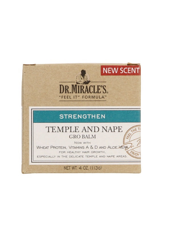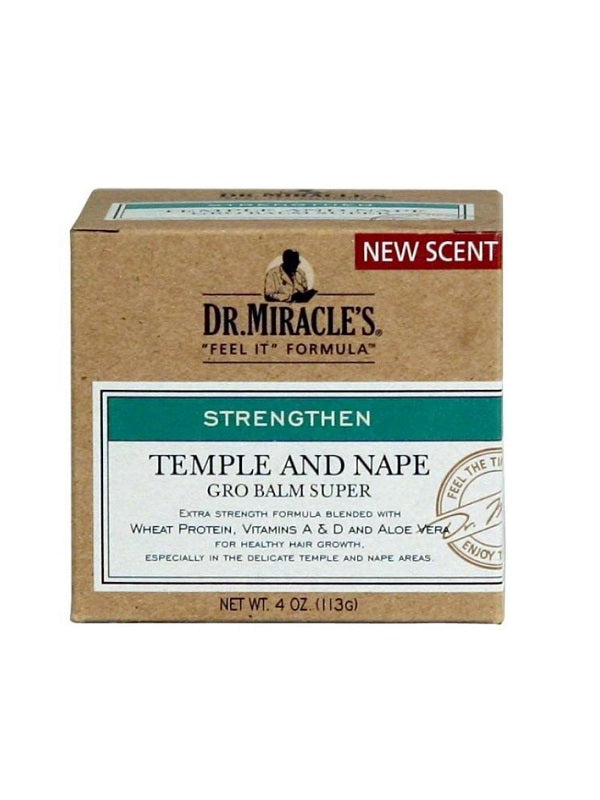 Ce baume est destiné à accélérer la pousse des cheveux au niveau des tempes et de la nuque. Boosté par une formule à base d'antioxydants, d'acides aminés, de protéines, d'anti-inflammatoires, de vitamines (A,D) et d'aloe vera, le Temple & Nape Gro Balm Super de Dr. Miracle's améliore la circulation sanguine dans le cuir chevelu. Elle lutte efficacement contre la sécheresse, les démangeaisons et la desquamation. Ce soin est particulièrement bien indiqué pour traiter les cheveux défrisés, tressés ou naturels.