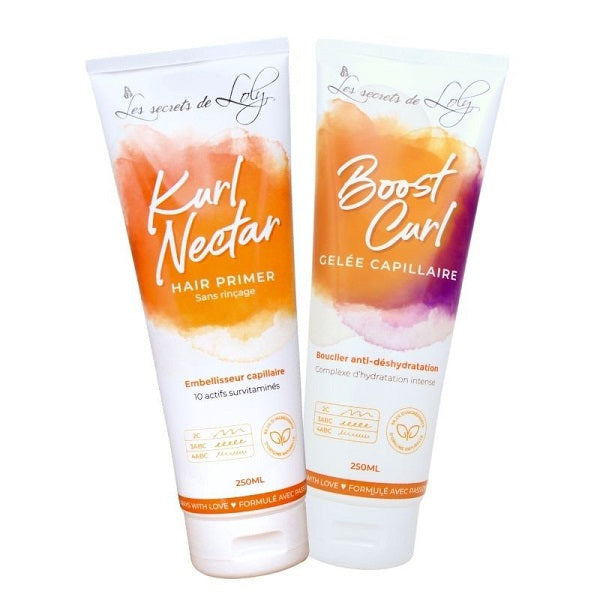 Le Leave in Kurl Nectar et la gelée Boost Curl Les Secrets de Loly: le combo des deux c'est l'assurance de belles boucles rebondies hydratées et brillantes. Tenue assurée!