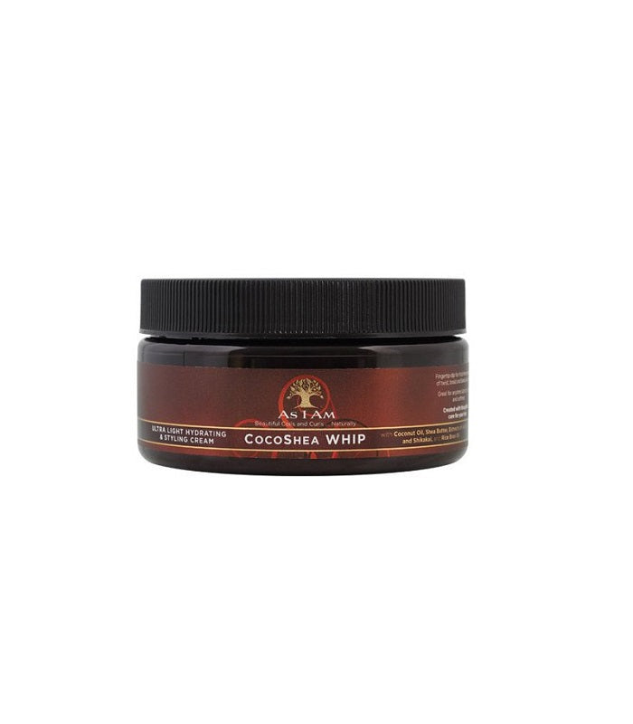 La crème coiffante fouettée COCOSHEA WHIP de la marque AS I AM hydrate, fait briller et maintient les coiffures twistées ou locksées.