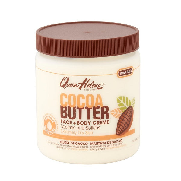 Cocoa Butter Face-Body Creme de Queen Helene est une crème faite à base de beurre de cacao naturel et de lanoline pure pour adoucir la peau sèche. C’est une crème adoucissante naturelle qui hydrate la face efficacement tout en réduisant l'apparence des rides. Elle soulage la peau étirée pendant et après la grossesse. Recommandée comme crème du visage de jour ou de nuit, elle nettoie, maintient et aide à restaurer l'équilibre hydrique essentiel de la peau. Cocoa Butter Face-Body Creme est utilisée sur le corps et le visage car elle laisse la peau plus lisse, douce et plus confortable.