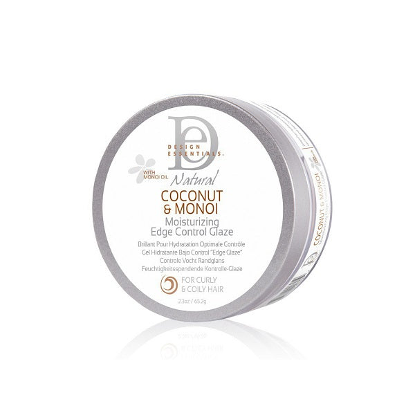 \nCOCONUT & MONOÏ Moisturizing Edge Control Glaze de DESIGN ESSENTIALS est faite à base d'huile de noix de coco et de monoï. C'est un produit de beauté qui a la particularité de redresser et de lisser les cheveux bouclés et frisés. Ce glaçage est utilisé pour parfaire votre style naturel en l'appliquant sur les bordures et au début d'une tresse. Cette formule non grasse procure une tenue durable autour de la racine des cheveux sans laisser de résidus indésirables. Moisturizing Edge Control Glaze de DESIGN ESSENTIALS redonne à votre style une brillance éclatante et maintient les coiffures texturées tout en hydratant vos cheveux.