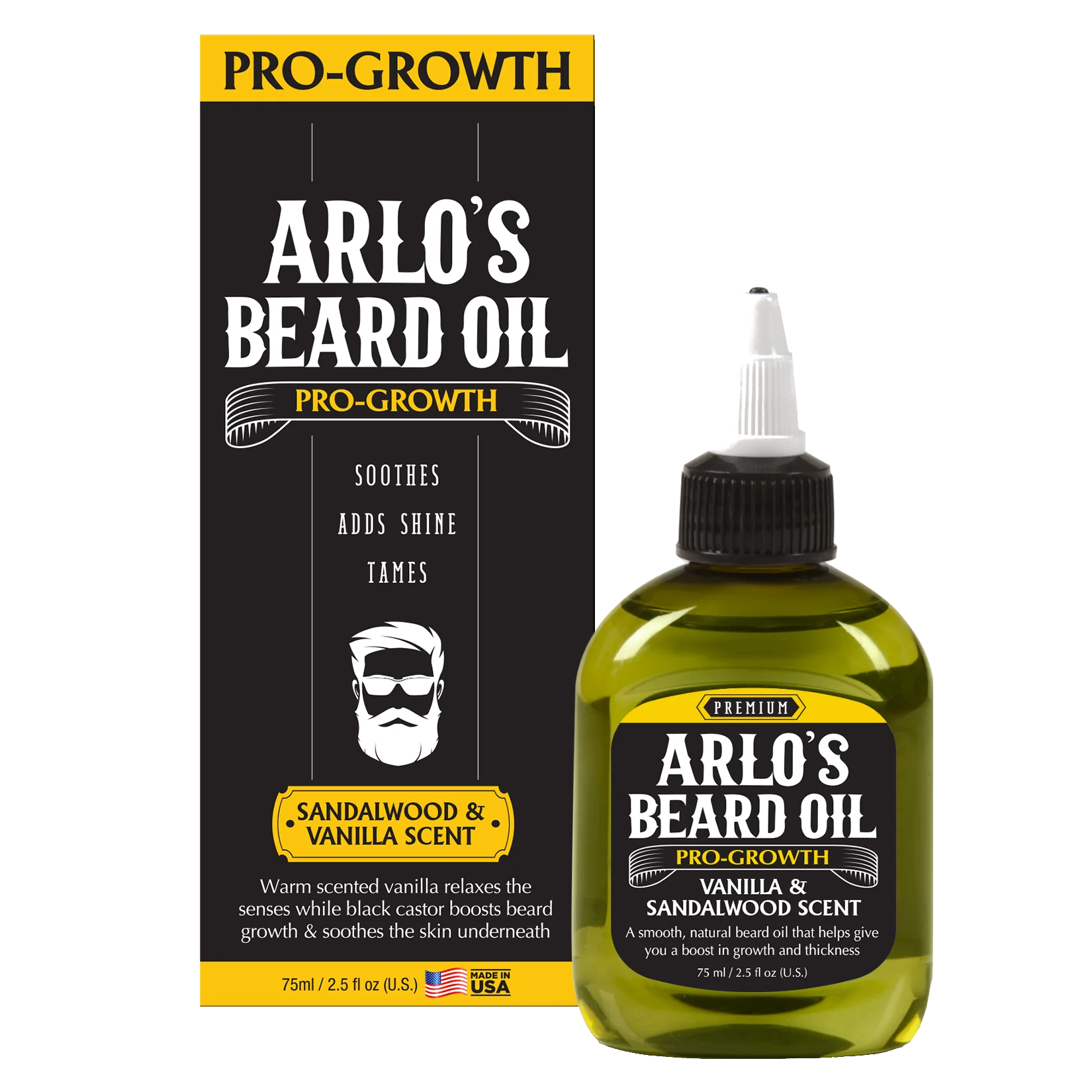 L’Huile pour barbe aux VANILLE et BOIS DE SANTAL ARLO’S Pro Growth Beard Oil est excellent pour croissance pour la barbe avec parfum de vanille et bois de santal