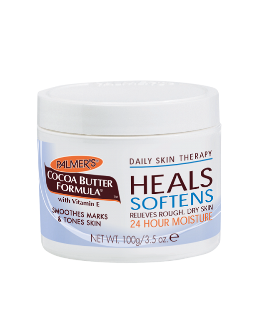 C’est le soin Palmer’s avec la plus grande concentration de pur beurre de cacao. Sa formule solide étonnante peut s’utiliser telle quelle ou réchauffée pour une texture plus malléable. Ce Beurre de soin solide, riche et réparateur, s’utilise sur les zones les plus sèches et rugueuses telles que les pieds, les coudes et les genoux, ainsi que sur les zones sujettes aux vergetures (poitrine, hanches, cuisses, bras, ventre…). Indispensable après un coup de soleil, il soulage et apaise la brûlure en quelques jours. Idéal aussi sur les cicatrices et pour toutes les peaux sensibles et à tendance eczémateuse.
