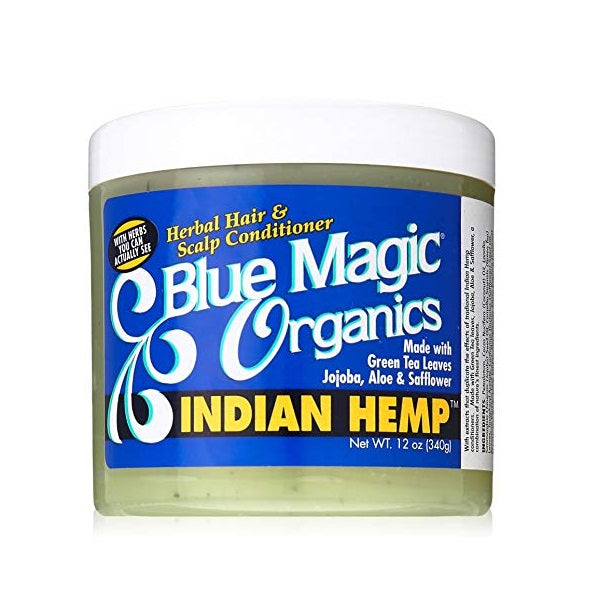 ORGANICS INDIAN HEMP de BLUE MAGIC redonne vie à vos cheveux grâce à sa formule à base d'herbes, de feuilles de thé vert et de jojoba.