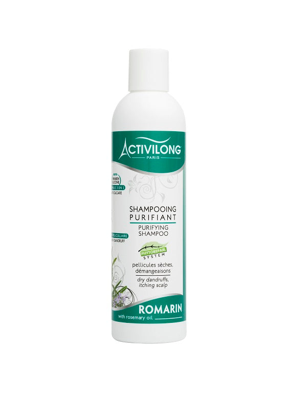 \nLe Shampooing Purifiant Activilong au Romarin apaise les démangeaisons et élimine les pellicules sèches. \n \nIl permet une parfaite hygiène du cuir chevelu et un coiffage facilité. \n \n[Sans paraben – sans silicone – anticalcaire]