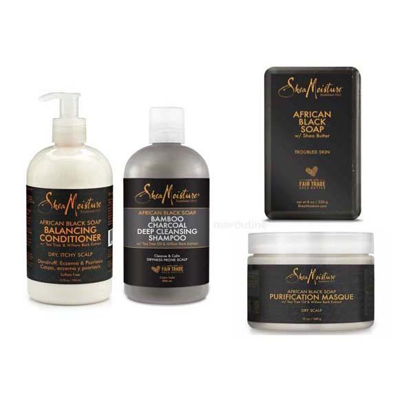 Shea Moisture African Black Soap Pack Capillaire Cheveux Sec & Cuir 4 Produits